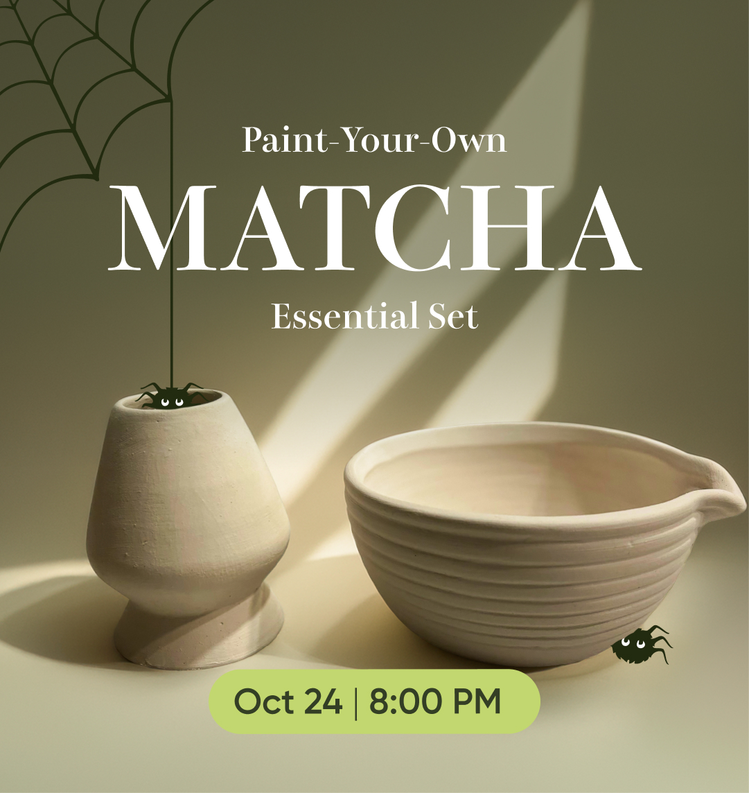 Join us on Friday, Oct 24th at 8pm for a relaxing paint night where you’ll paint your own ceramic whisk holder and single cup chawan — the perfect matcha essentials.